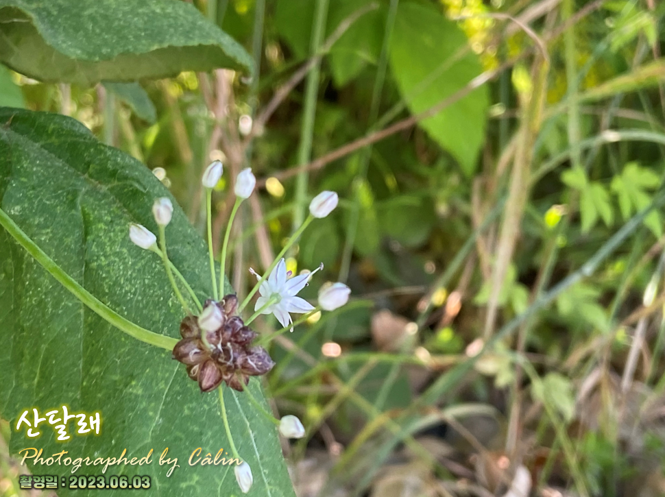 산달래는키도 크고 꽃송이가 한꺼번에 달려 같이 피어나는 편이고, 꽃줄기가 잎보다 길다는 특징이 있습니다.